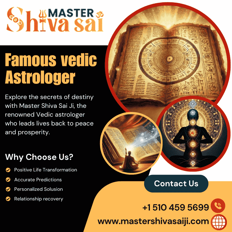 Master Shiva Sai Ji is a renowned Vedic Astrologer in California who provides life-changing spiritual guidance and solutions. Our extensive knowledge of ancient astrology enables us to provide accurate predictions as well as effective solutions for issues pertaining to love, marriage, career, business, and personal concerns. Each individual is treated with warmth, support, and a focus on bringing clarity, confidence, and peace into their lives. Many individuals in California seek our assistance for genuine advice and transformational results. Our goal is to provide you with success, positivity, and a brighter future through the use of Vedic astrology.